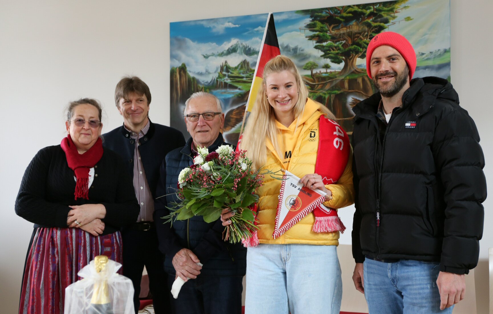 Der TSV Aindling und die Gemeinde Aindling haben ihre erfolgreiche Olympiasiegerin Dajana Eitberger am Sonntag im Rathaus empfangen. Die Wintersportlerin, die bei den olympischen Spielen in Mailand und Cortina d'Ampezzo Gold und Silber im Rodeln gewonnen hatte, wurde von Bürgermeisterin Gertrud Hitzler und TSV Abteilungsleiter Thomas Grammer geehrt.