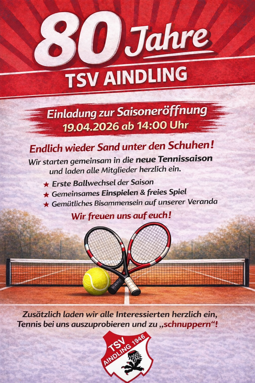Für eine gemütliche Atmosphäre ist natürlich auch gesorgt – kommt vorbei, bringt gute Laune mit und startet mit uns in eine tolle Tennissaison!