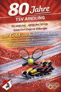 Unser TSV Aindling feiert in diesem Jahr 2026 sein 80 - jähriges Bestehen und wird dies auch feiern. Aus diesem Anlass findet am Freitag, den 27.02.2026 im Sportheim ein Festabend statt, zu dem neben den geladenen Ehrengästen aus Sport und Politik auch unsere Mitglieder aus allen Abteilungen recht herzlich eingeladen sind.