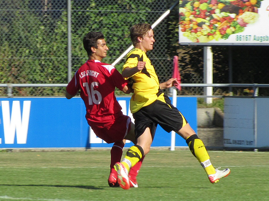 Der Auftakt ist geglückt!TSV Aindling - 1.SC Feucht 3:0 (1:0)04.09.11 10:08 (jg) Ein Auftakt nach Maß gelang der Aindlinger A-Jugend im ersten Landesliga Punktspiel gegen den 1. SC Feucht, mit 3:0 Toren konnte man die Gäste bezwingen. In einem schnellen temporeichen Spiel ließ man die Gäste kaum zur Entfaltung kommen.Sie hatten nur in der Anfangsphase und Mitte der zweiten Halbzeit gute Einschußmöglichkeiten, ansonsten hatte unsere Defensivabteilung den gefährlichen 2-Mann-Sturm immer in Griff. Das erste Landesligator erzielte Patrick Modes. Schon nach 5 Min. als er einen klugen Paß von Daniel Deppner aus 16m verwandelte. In den folgenden 30. Minuten hätte man die Führung ausbauen müssen, aber leider wurden toll herausgespielte Chancen leichtfertig vergeben. So kamen die Gäste wieder besser ins Spiel und bedrängten unser Tor immer mehr.